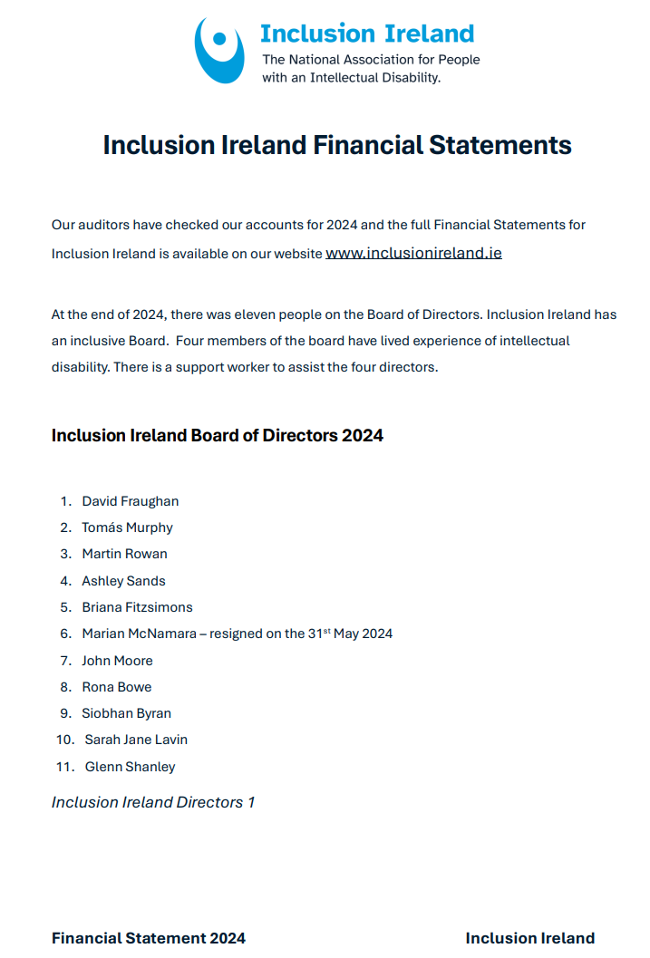 Inclusion Ireland – Pre Budget 2025 Submission